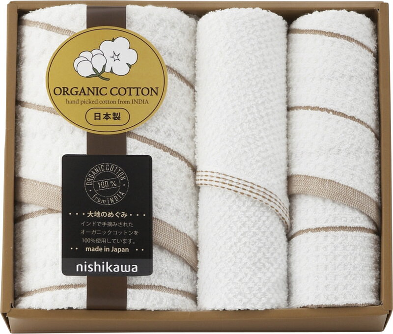 オーガニックコットンバスタオル&フェイスタオル2枚 セット 西川リビング 日本製 綿100% コットン 吸水性 タオル おしゃれ 内祝い 結婚内祝い 結婚祝い 引き出物 引っ越し 引越し お中元 お歳暮 新築祝 お返し ご挨拶 ギフト 敬老の日