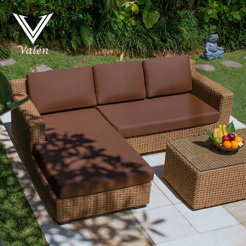 クッションには撥水性のある生地を使用しているため、そのまま屋外でも快適にお過ごしいただけます。