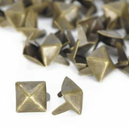 【ピラミッド型 スタッズ 2爪 10mm [ アンティークブラス / 1個 ]】金属製スクエアスタッズ。