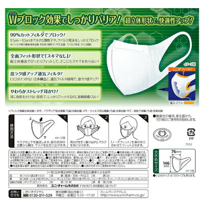 商品に関するお問合せユニ・チャーム株式会社108-8575 東京都港区三田3丁目5番27号<お客様相談ダイヤル >:ベビー用品:0120-192-862生理用品:0120-423-001軽失禁・介護用品(ライフリー):0120-041-062生活用品(化粧パフ・一般ウェットティッシュ・お掃除用品など):0120-573-001衛生用品(マスク):0120-011-529※受付時間:9:30-17:00(月-金曜日、祝日除く)広告文責東盛商事株式会社 EC事業部電話:048-959-9624区分日本製 / 衛生マスク【ユニ・チャーム】超立体マスク 大きめサイズ(30枚入)【4903111526161】【日本製】 ユニチャーム / 超立体マスク / 不織布マスク / ホワイトカラー / ノーズフィット付 / ワイド耳かけ ●スキマ作らず、強力遮断!●息らく感アップフィルタ採用●やわらかストレッチ耳かけで長時間使用しても快適性つづく! 2