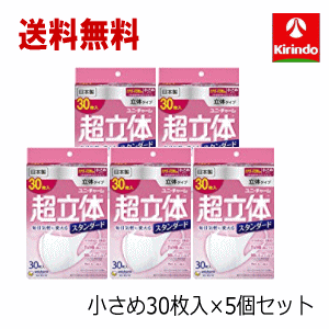 生活応援価格 送料無料 5個セット ユニ・チャーム 超立体マスク スタンダード 小さめ30枚入×5個 風邪・花粉用 ユニチャーム お得用 お徳用 隙間を作らない 息が楽 99%カットフィルタ 衛生 マスク