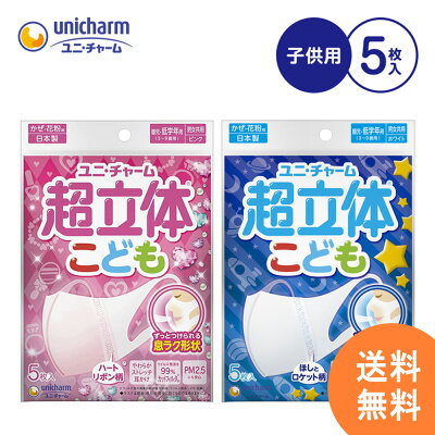 【10袋セット】超立体マスクこども用 ユニチャーム 5枚入 不織布 日本製 使い捨て ホワイト白 ピンク 国産 マスク 送料無料
