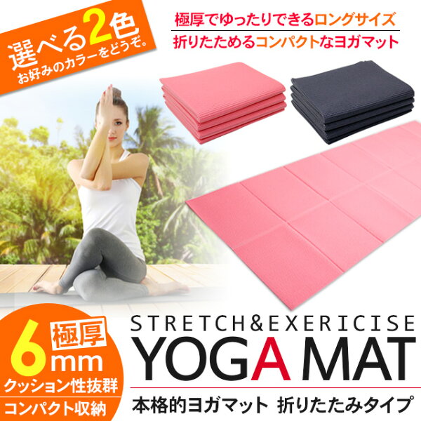 商品仕様 ・サイズ:約171cm×61cm 厚み6mm ・材質 :PVC ・カラー:全2色ピンク/ブラック 商品内容 ・折りたたみヨガマット 厚み6mm ×1 送料詳細 ・こちらの商品は 送料無料 です。