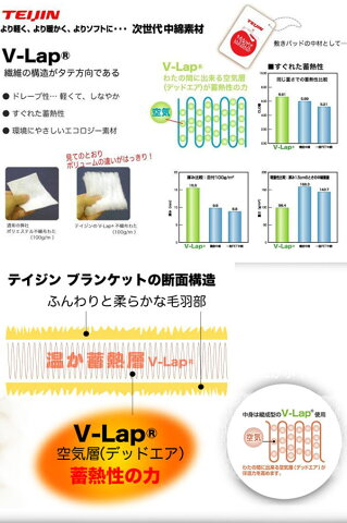 テイジンV-lap あったか毛布[TEIJIN なめらか包みのあったか寝具] あったか掛け毛布(掛毛布)&敷き毛布(敷毛布) 帝人あったか毛布 ふんわり、軽くてやわらか あったか敷きパッド・あったか毛布 あったか毛布は、掛け敷き両方ともに、縦型成型のテイジンV-Lapわたが入っています。