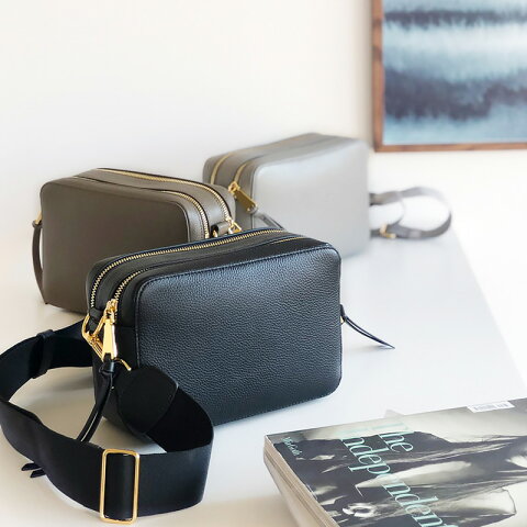 素材 本牛革 カラー BLACK - GOLD 金具 - OLIVE - GOLD 金具 - GREIGE - GOLD 金具 - GRAY - GOLD 金具 - BLACK - SILVER 金具 - OLIVE - SILVER 金具 - GREIGE - SILVER 金具 - GRAY - SILVER 金具 - SIZE 高さ 15cm よこ 23cm マチ 9cm ストラップ (ナイロン) 91-138cm ストラップ (レザー) 117-129cm 重量 450g ※サイズはスタッフによる実寸となりますので、 測り方により誤差が出る場合がございます。