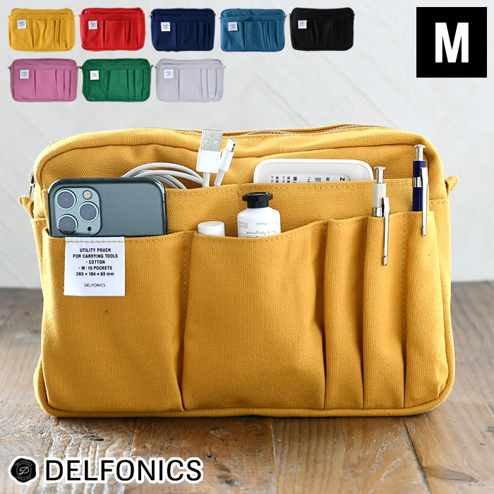 商品名 インナーキャリング M デルフォニックス DELFONICS 商品詳細 サイズ 約 W265×H184×D65mm 重量 約180g 素材 コットン 仕様 ■14ポケット ■A5サイズ厚さ50mm程度収納可能。