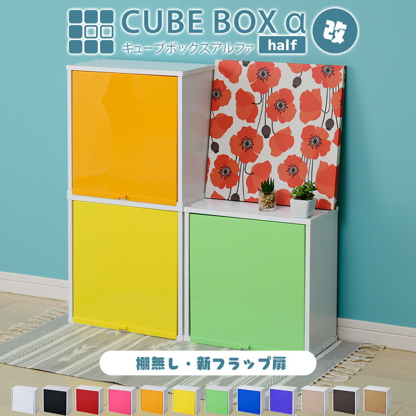 カラフル12色から選べる 扉付き 薄型 キューブボックスα ハーフ 彩 木製 収納棚 カラーボックス スリム 浅型 飾り棚 鏡面 ホワイト ブラック 白 黒 ピンク 他 卓上 ミニ食器棚