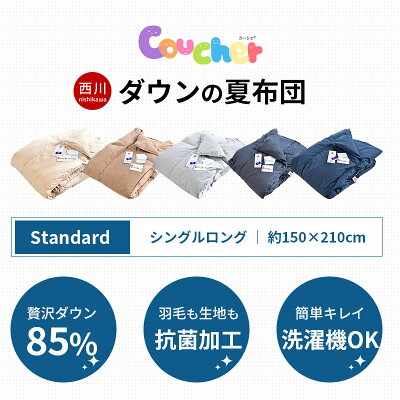 当店限定品 洗えるダウンケット 西川 羽毛 肌掛け布団 シングル ロング 150×210cm ダウン85% 詰め物300g ダウンケット クーシェ スタンダード 洗える 肌掛け ウォッシャブル 羽毛布団 夏用 羽毛肌掛け布団 肌布団 夏 洗濯 抗菌 無地 夏布団 掛け布団 coucher【あす楽対応】
