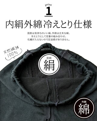 内絹外綿 冷えとり レギンス 短丈 1分丈 2分丈 ブラック 黒 レディース 夏用 夏 冷え取り シルク 綿 天然繊維100% ペチパンツ 汗取り 冷房対策 日本製 841[I:3/10]
