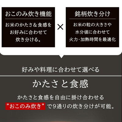 ◆おこのみ炊き機能お米のかたさ&食感をお好みに合わせて炊き分ける。