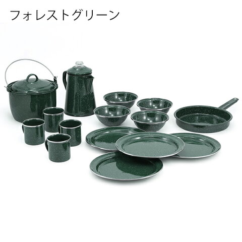 ※本製品、鍋に付いた蓋が16番目のアイテムとなります(MEXICO)■仕様[本体材質]ホウロウ加工スチール[本体縁材質]ステンレススチール[総重量]4000g[カラー]ブルーフォレストグリーン[セット内容]マグ×4プレート×4ボウル×4フライパンパーコレーター鍋、鍋蓋●マグ[サイズ]直径約8.8cm×高さ約8.2cm[重量]114g[容量]約350ml●プレート[サイズ]約25.5cm[重量]約310g●ボウル[サイズ]直径約15.6cm×高さ約6cm[重量]138g[容量]475ml●フライパン[サイズ]直径約24.5cm×高さ約4.2cm(ハンドル含まず)[ハンドル部サイズ]約15.9cm[重量]約370g●パーコレーター[サイズ]約14.8cm(底面)×高さ約23cm[重量]約576g[容量]約1.89L●鍋[サイズ]直径約22cm×高さ約13cm[重量]約637g[容量]約2.8L2018/8/7