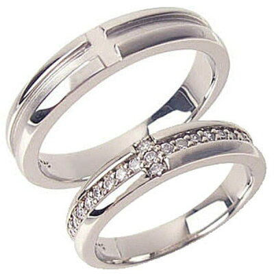 レディースにはクロスラインにキュービックジルコニアのストーンが並び女性らしい華やかで優しい印象です。