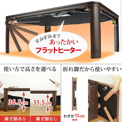 【カラーバリエーション】ブラウン・ナチュラル【仕様】天板:繊維板(木目転写)脚部:天然木(ラバーウッド)フラットヒーター(300W・中間スイッチ式)コード長さ:約2.8m◎完成品【サイズ】幅105x奥行75x高さ40cm重量:約21.5kg天板サイズ:幅105x奥行75cm・厚み15mm・8.5kg中天板下高さ:31.5/36.5cm折り畳み高さ:11cm株式会社ナカムラ(G0100132)【送料について】北海道、沖縄、離島は別途送料を頂きます。