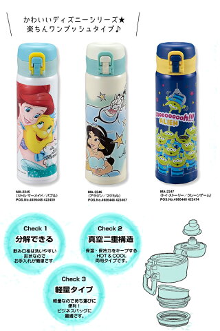 ディズニー軽量ボトル ●軽量タイプ 軽量なので持ち運びに便利! ●ビジネスバッグに最適 ビジネスバッグに最適なA4ファイル(横向)と同じ高さ! ●簡単操作 ●お手入れ簡単 分解できて洗いやすい ●真空二重構造 保温・保冷力をキープ HOT&COOL両用タイプ ※ご注意:食器洗い乾燥機は使用しないで下さい。